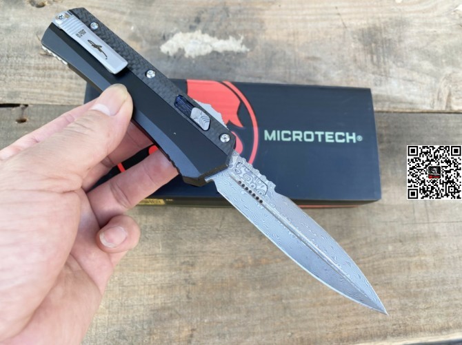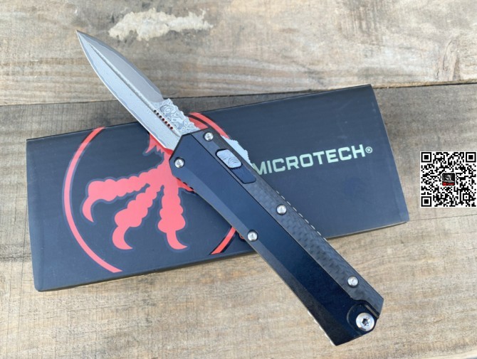 新款 Microtech 微技术蛇神直跳刀(大马士革 碳纤维 柄 )