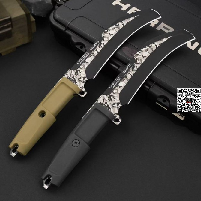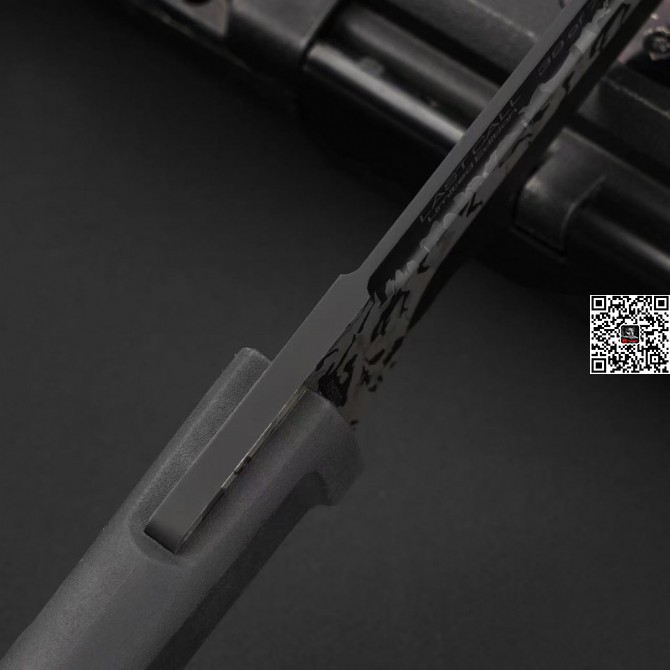作为现代复刻版,Corvo Last Call全球限量70把,采用 Böhler N690钢(58HRC硬度)锻造,配备Geotech Camo迷彩镀层。刀身设计包含: