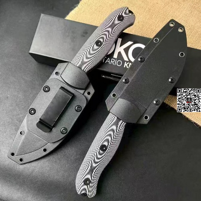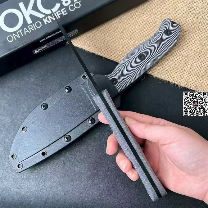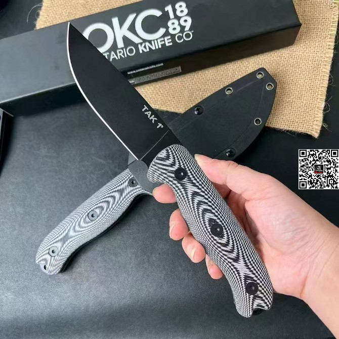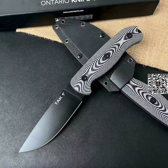 ON8671: TAK-1生存刀是安大略刀具公司2025新品,无论是RAT还是我们的TAK系列刀具,您可以放心这些刀具能够经受耐用性考验。TAK刀的特点包括1095碳钢刀片、G10手柄采用Micarta人体工学手柄板,增加湿手时的握持力。