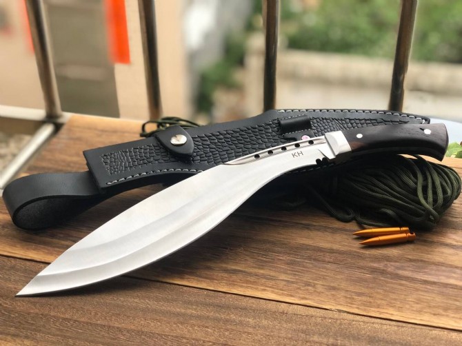 廓尔喀刀(又称尼泊尔军刀)此刀全手工制作一体龙骨,不要拿普通的弯刀来对比(老鼠尾手柄)不是一个档次的,我们秉承“高质优品”之宗旨,在选料时不惜成本,制作时精益求精,每一把都精品