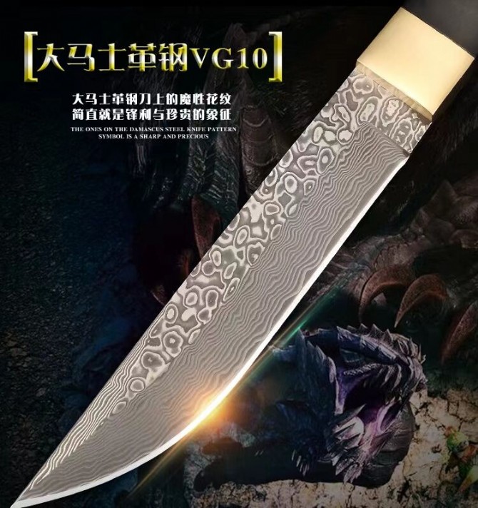 钢材:锻造大马士革钢VG10,108层,