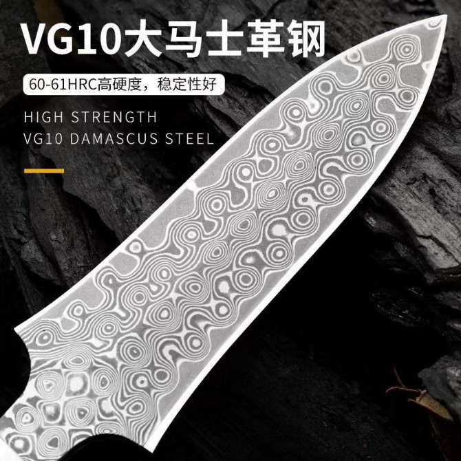 边角修磨完美无暇,刀刃采用98层VG10大马士革钢,硬度韧性非常好,