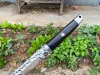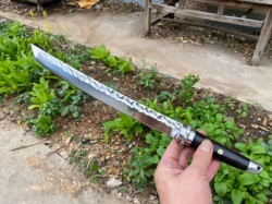 霸气狂野造型设计,彰显刀具的强悍而坚硬,一体龙骨进口A8合金钢!真空热处理,60HRC硬核性能强,超级锋利实用,出色的表现削切能力韧性保持度很好,(性能测试视频可见)刀刃表面镜光+ 手工精凿锻造凹凸石纹纹理,柄材是进口越南紫光檀木,纯手工雕刻制作,皮套:阿根廷植鞣皮手工雕花缝线工艺高端皮套
