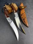 【参数】总长:24cm、刀刃:12.5cm、手柄:11.5cm、刃宽:3cm、钢厚度:3.3MM、刀刃材质:奥地利进口M390粉末钢(神钢)支持专业光谱钢材化验,【假一赔十承诺】,硬度:62HRC,上海专业真空深冷油淬热处理,锋利度极好,手柄材质:不锈钢雕刻蜂窝纹+进口蛇纹木,包装:手工制作高端皮套+手工包装盒。
