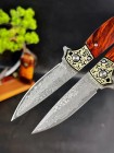 【慕尚女皇·快开折叠刀】经典国风手工版、价美物优,进口78层大马士革钢,锻造祥云花纹、每把手工利刃无比,纯黄铜两面镶嵌手工雕刻唐草装饰+老料黄檀木手柄、滚珠轴承系统开刀方式、单手即可快速开合[色,整刀做工精致细腻、手感非常有分量、搭配高端意大利手工制作的刀套、此刻是非常性价比的小刀、强烈推荐。