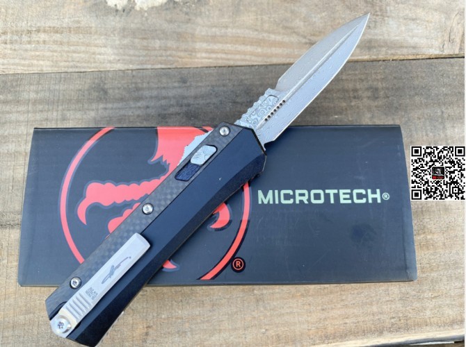 新款 Microtech 微技术蛇神直跳刀(大马士革 碳纤维 柄 )