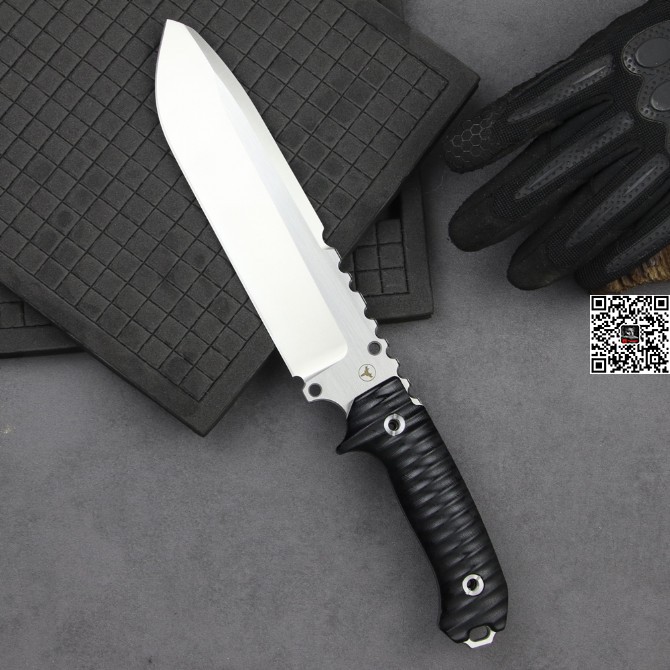 冷刃【茄子】从厨房到野外都能兼顾的实用型刀具、7MM厚大的龙骨、裸刀重量530克,如此重量,搭配一胜百DC53钢材,茄子可以作为厨房砍骨刀使用、但!户外才是它的主场!切、割、劈、砍、削、撬、一应俱全的多功能刀型、回归刀具的实用本质、整体设计以实用为主,并以高性价比打造的一款直刀,约46MM大宽刃设计,搭配大平磨开V,确保了锋利度和劈砍性能,附带碳纤纹K鞘和加厚耐磨的织带!