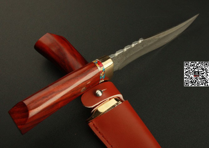 其 他: 刃口锋利 大马士革钢花纹和把手木纹及颜色各异,以实物为准