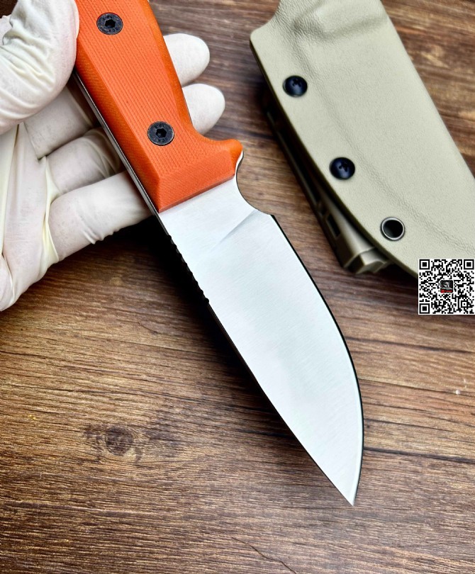 安大略经典RAT系列户外生存小直:RAT5安大略一体全龙骨,非常强壮,结实耐操,锋利实用!户外甚至可以当应急撬棍,或者扎在树上做引体向上或者踩在上面。橙子色g10手柄,破窗锥,尾挂,非常适合多种携行。D2钢,性能非常均衡可靠,